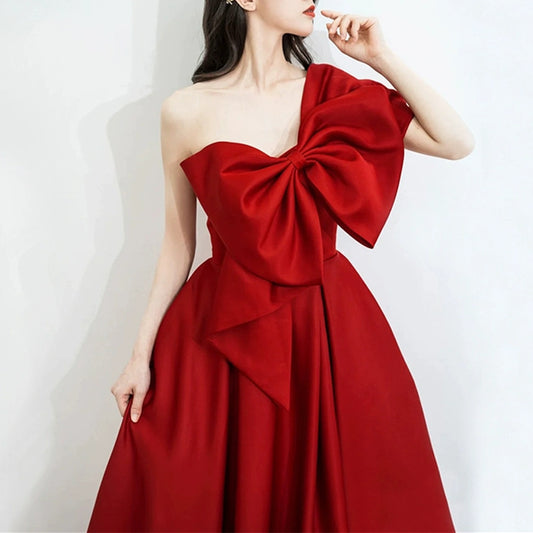 DOLLY High End Retro Style One Shoulder Big Bow Long Dinner Dress-KIKI