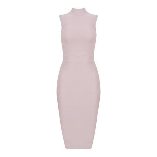 DOLLY High End Stand Collar Sleeveless Slim Fit Bandage Midi Dress-KYA