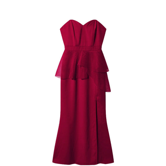 DOLLY Luxury Black Feather Tube Top Waist Baring Slim Fit Long Cocktail Dress-JAJA