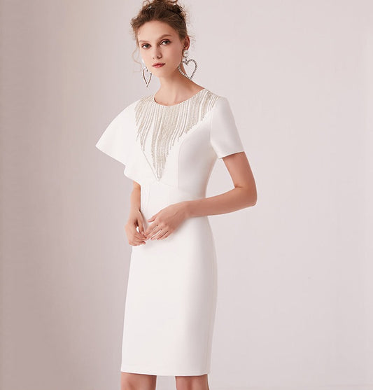 Gorgeous high end white small dress skirt can usually wear banquet host dress- Etia