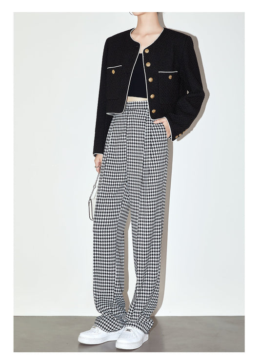 High-quality black white plaid houndstooth casual high-waist pants trouser - Tilda