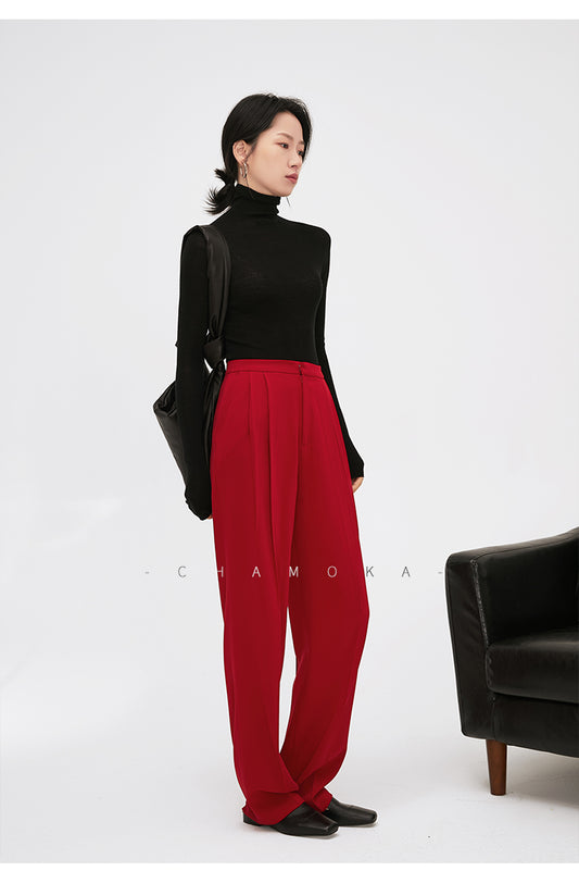 High-quality drape tapered loose high-waisted wide-leg red suit pants - Kimona