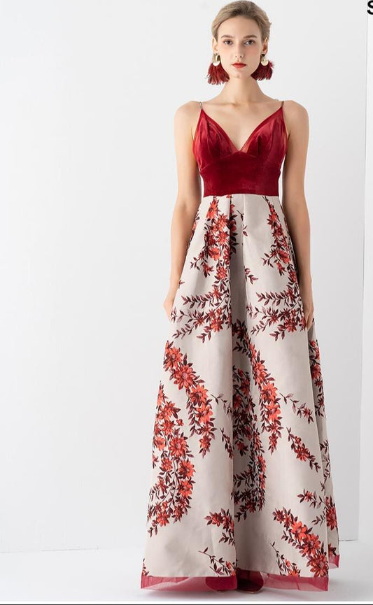 GOUDIN Classic embroidery print thick sling ball evening dress - Kitan.