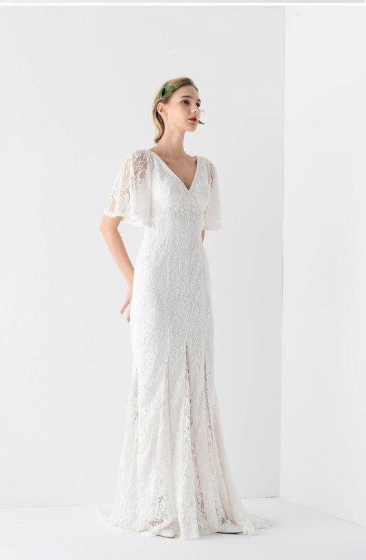 Elegant Simple white long-sleeved evening dress bridal wedding dress - Emilie