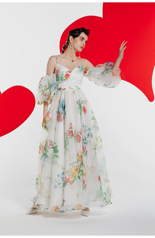 Custom green floral jacquard princess sling fairy dress - Ruila