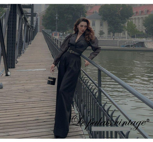 Elegant retro good fit high waist black wide-leg pants - Sama