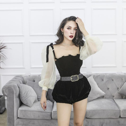 LE PALAIS VINTAGE retro black velvet high waist lantern shorts- Jia