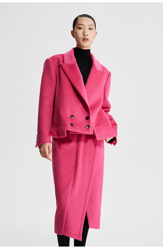 LEDI W fall winter loose pink wool crop jacket blazer - Impio