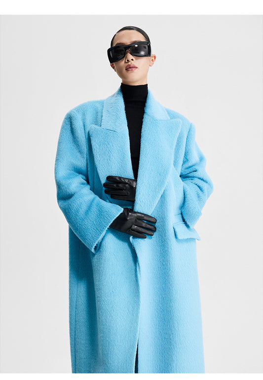 Ledi W blue Pink alpaca wool autumn winter wool wide-shouldered straightlcoat - suli