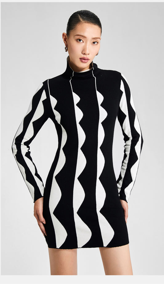 LEDI W MIDI turtkeneck sweater fall winter black white short knit dress - Lugaa