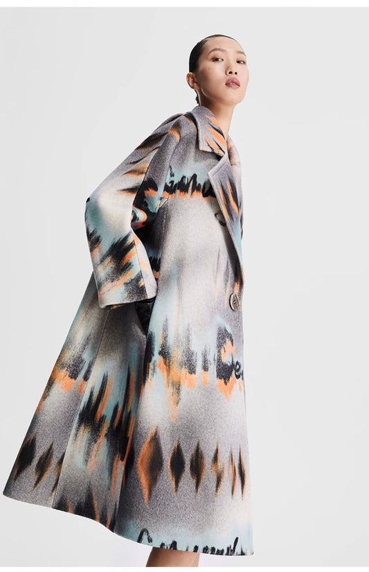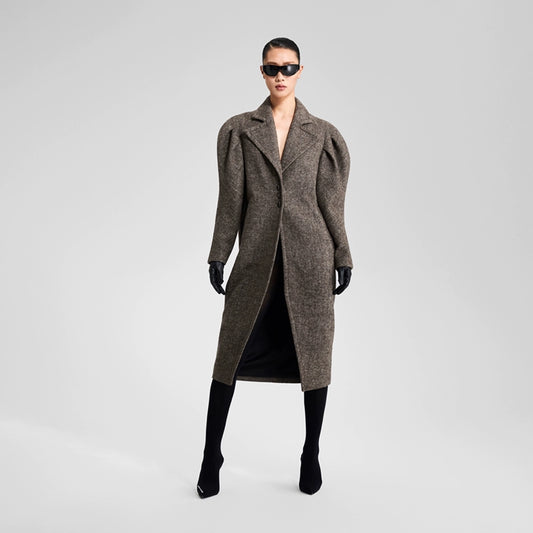 LEDI W PURE WOOL TWEED COAT FALL/WINTER PRINT SILHOUETTE LONG COAT - Haii