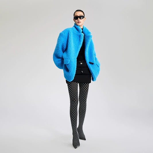 LEDI W croped winter faux lambwool blue fuzz coat - Llege