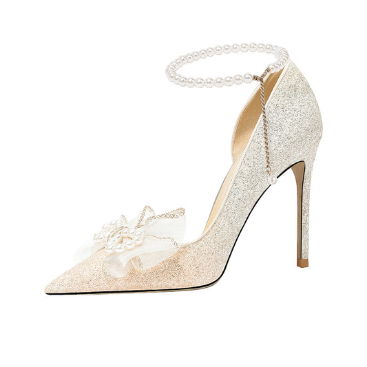 Lily wedding rhinestone fine heel pointy toe shoes- Hector