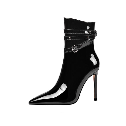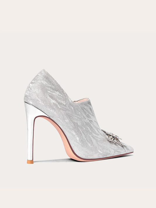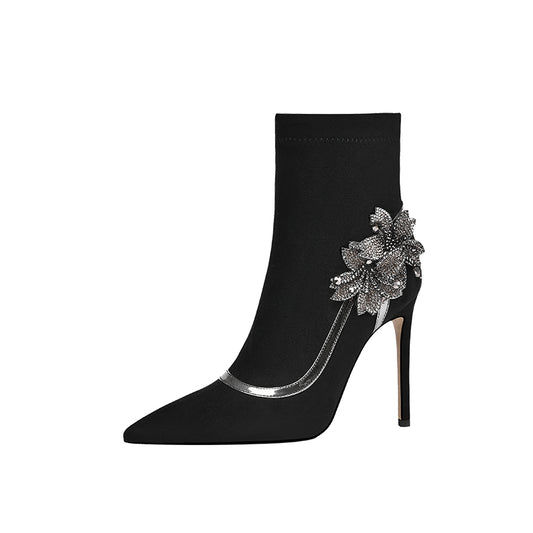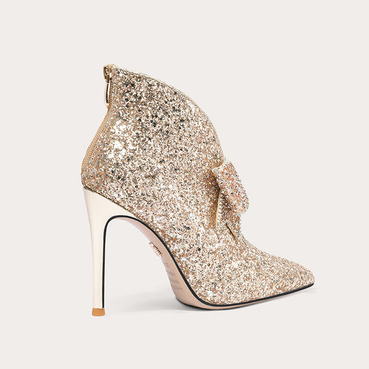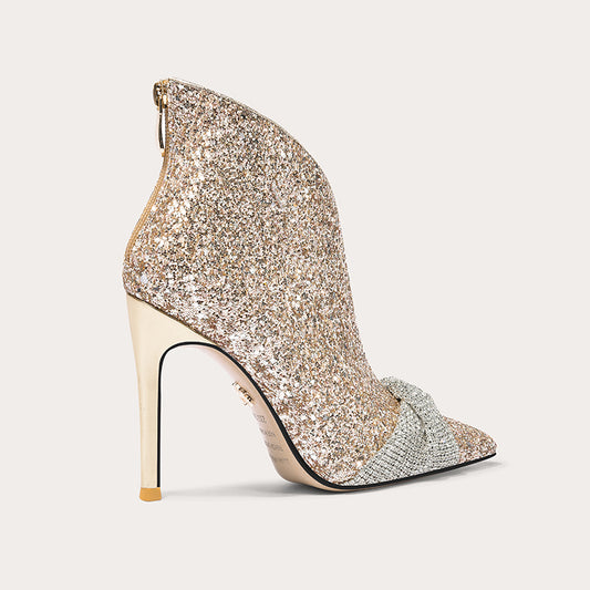 High-heeled short boots pointed rhinestone stiletto wedding shoes- Dali