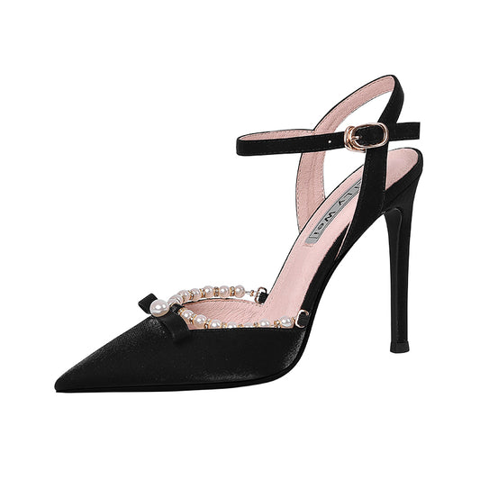 Lily Early 2023 Spring fairy high heels stiletto pearl bow single shoes- Nicola
