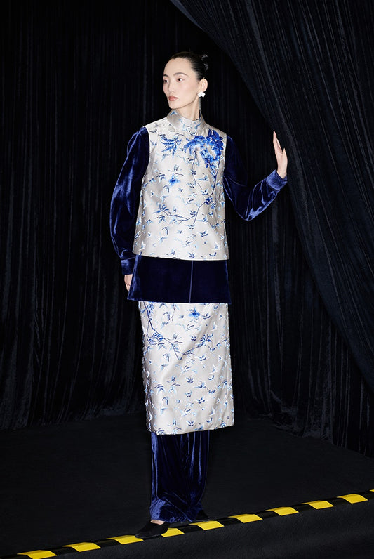 M essential Mackay designer butterfly jacquard blue vine and butterfly embroidery vest - DOME.
