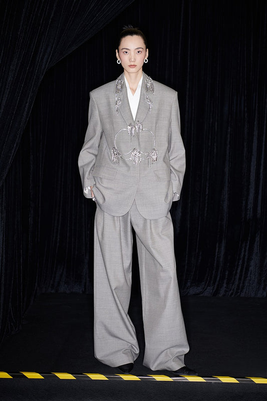 M essential Mackay designer raw linen skinny wool crystal lamp tassel bead suit - CHEN.