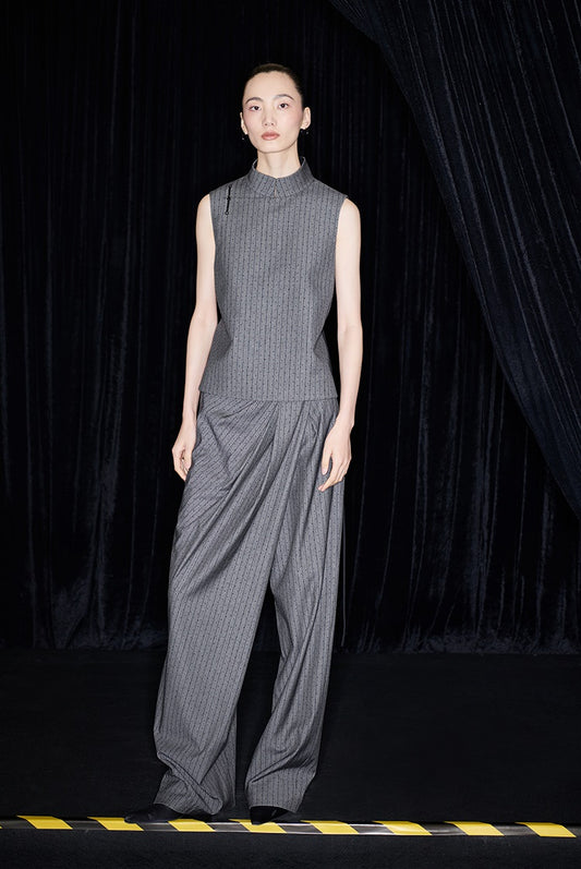 M essential Mackay designer label sand diamond grey stripe diamond buckle drawstring vest - ZING.