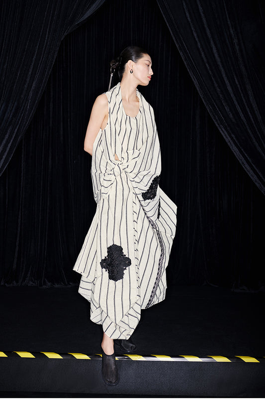 M essential Mackay designer Morley Flat Lace-up backless top pleated black skirt - Sidd.