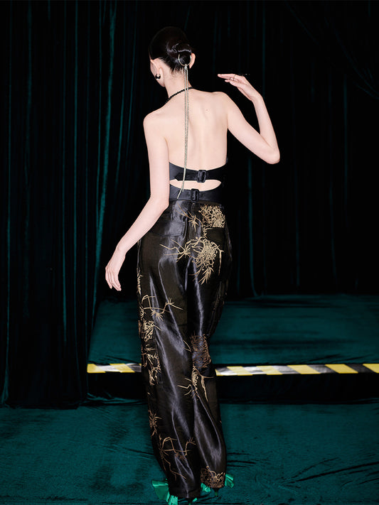 M essential Mackay designer jacquard buckle backless corset pant set - Eyeboy