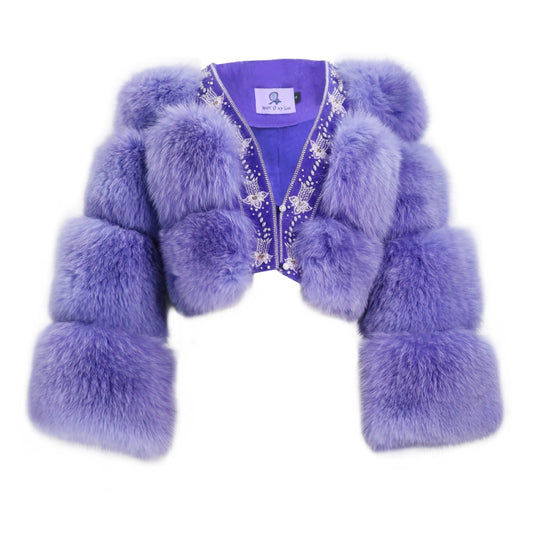 Magic Q's exclusive elegant purple heavy embroidered fox fur short coat - uiew