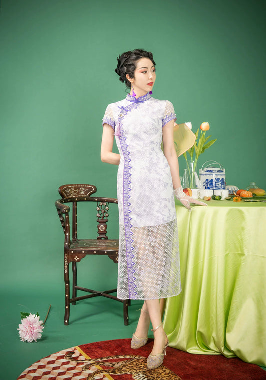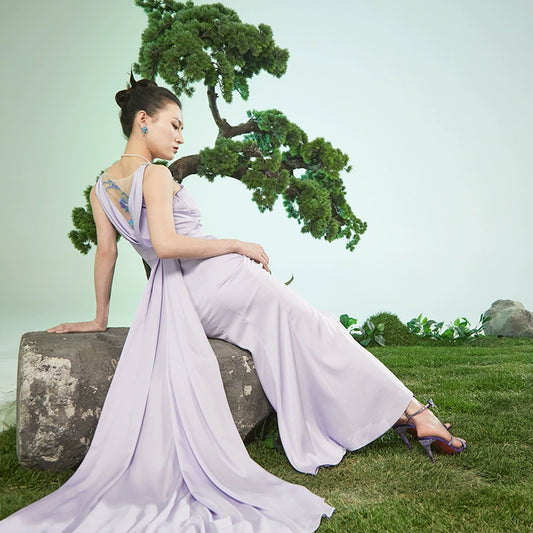 Magic Q purple emerald brocade light purple heavy embroidered corset embroidered jade beaded dress