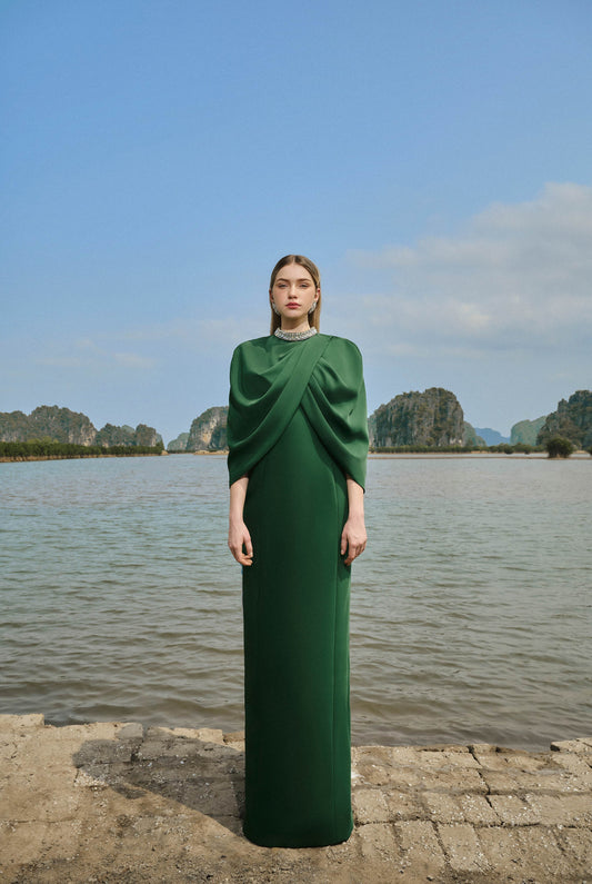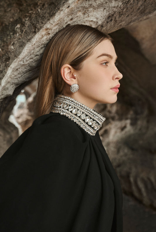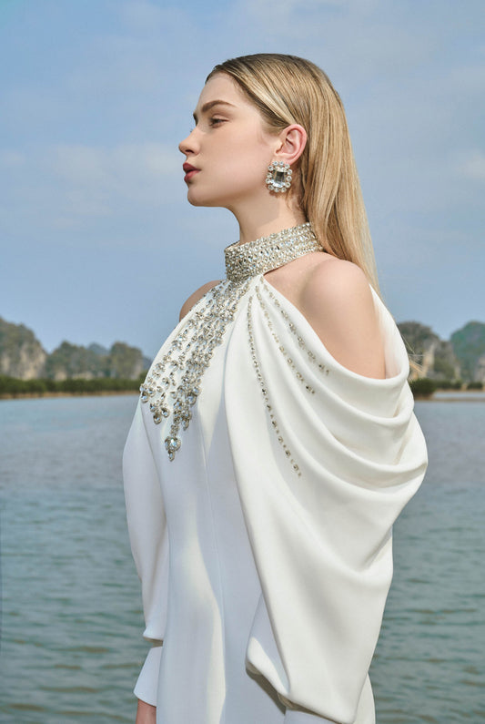 Stone Embellished collar Short Cape + Full Bodycon long Dress