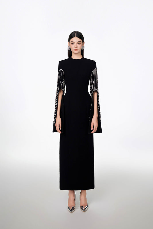 Crystal - Embellished Long Sleeve Bodycon Full Dress