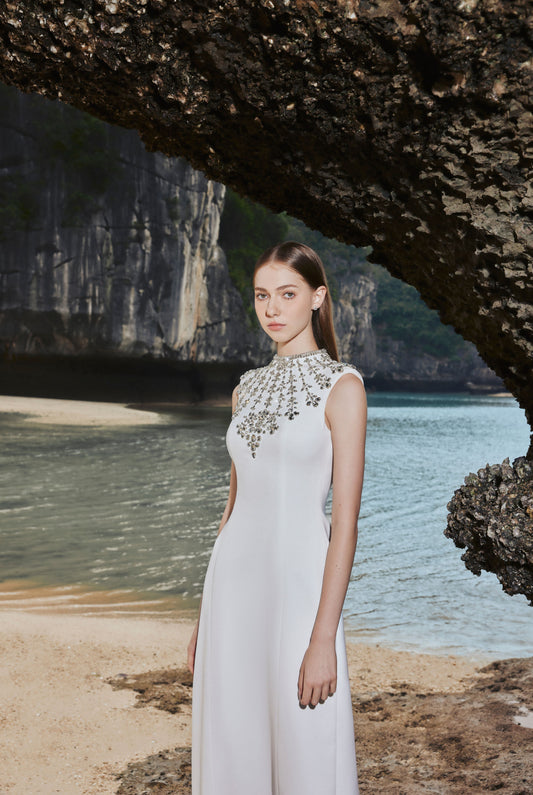 Sleeveless Bodycon Full Dress With Stone Embellishment
