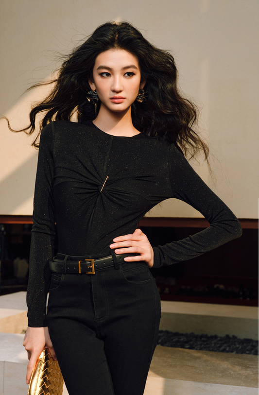 WANGXO | Star Shiny Silk Knit Accented Slim-Fit Top - NOLA.