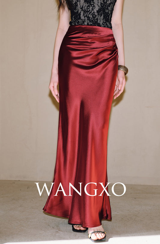 WANGXO | Acetate Gilt Satin Pleated Fishtail Skirt-SARA.