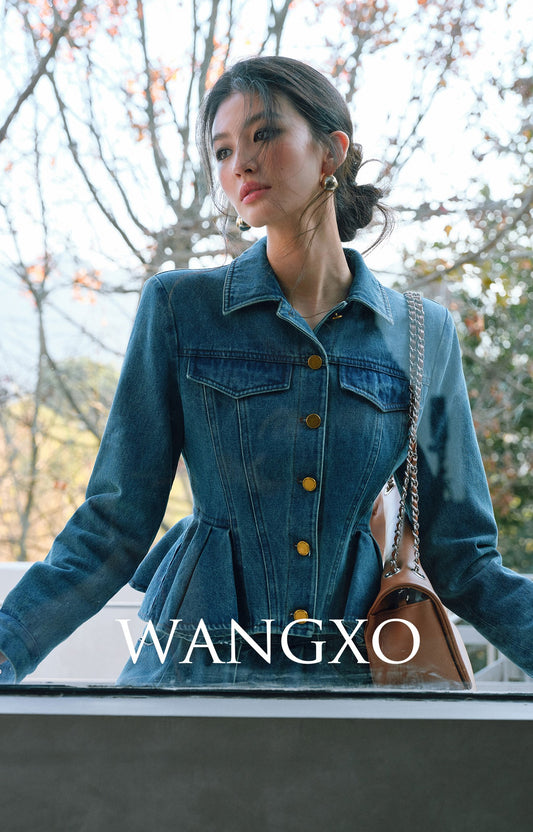 WANGXO| Flexible Cotton Denim Ruffle Top & Straight-Leg Pants- NAYA.