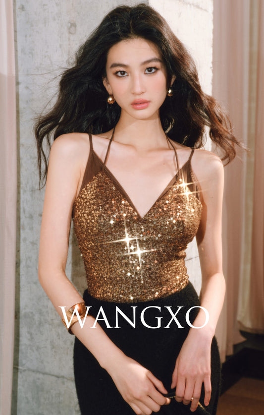 WANGXO | Hand-Stitched Adjustable Two-Piece Halterneck Sling Top -SENA.