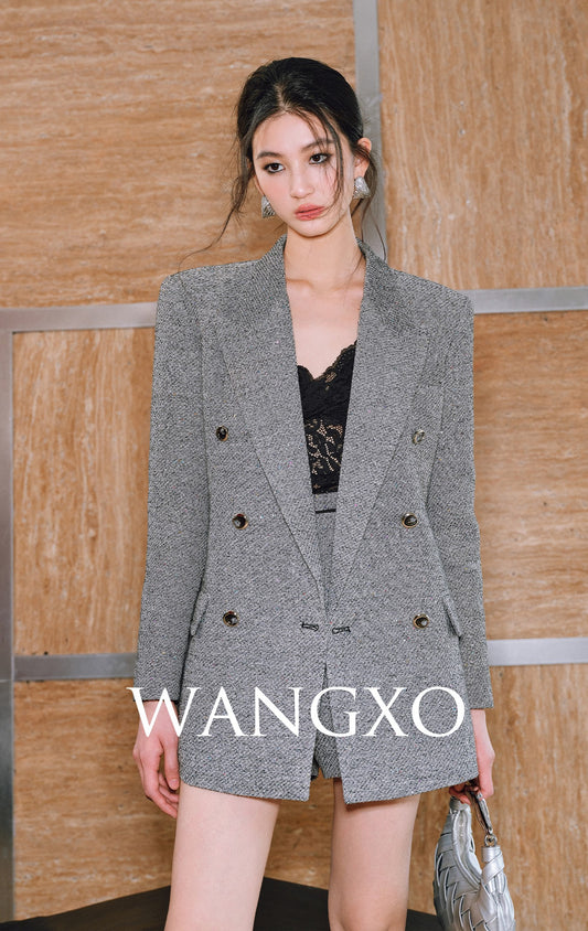 WANGXO | Sequin Twill Vintage Wide-Shoulder Double-Breasted Suit & Short Trousers- MAYA.