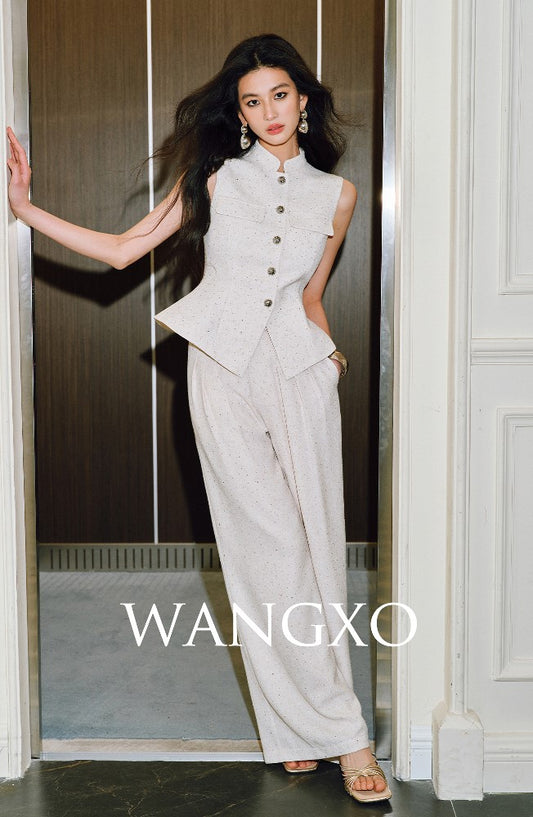 WANGXO | Silver Classic Tweed Vest & Straight-Leg Pants Suit - LYRA.