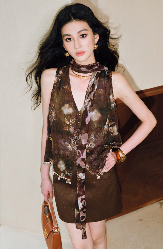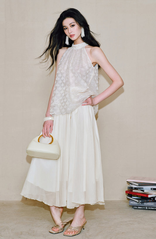 WANGXO Sequin Halterneck Top & A-Line Gauze Skirt - ZELDA.