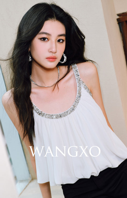 WANGXO Diamond Dust Camisole Crust Hem Shirred A-Line Top- NYXIE.