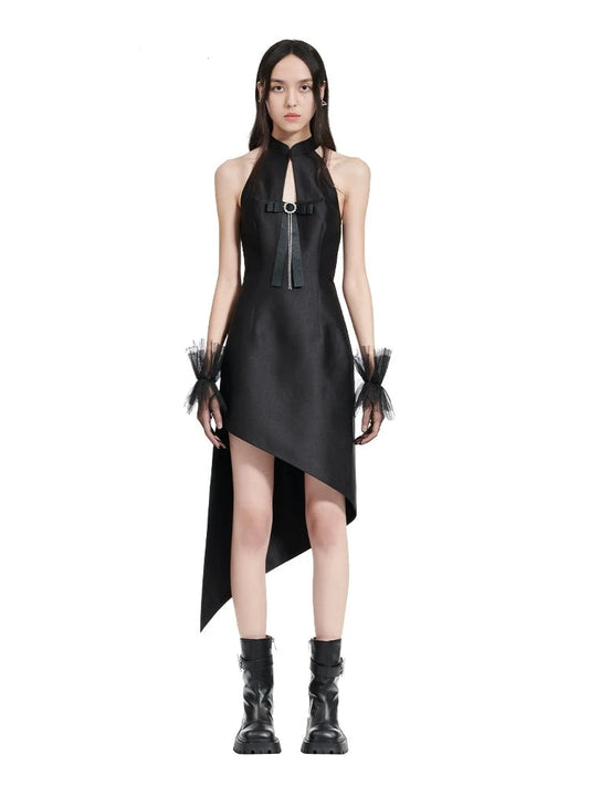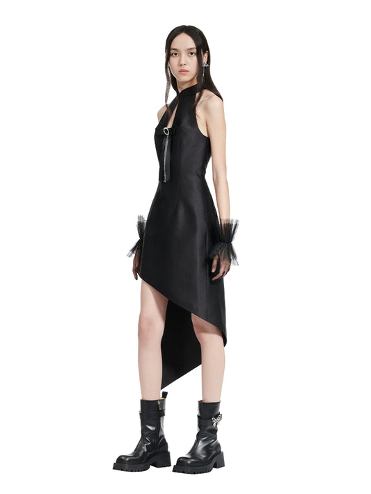 YES BY YESIR | Silk Cheongsam-Inspired Halterneck Dress - XIUMEI.