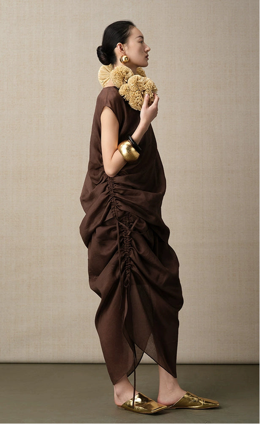 ZHUCHONGYUN spring silhouette shirred dress-KANON.