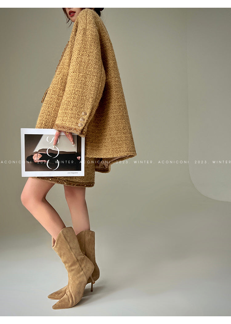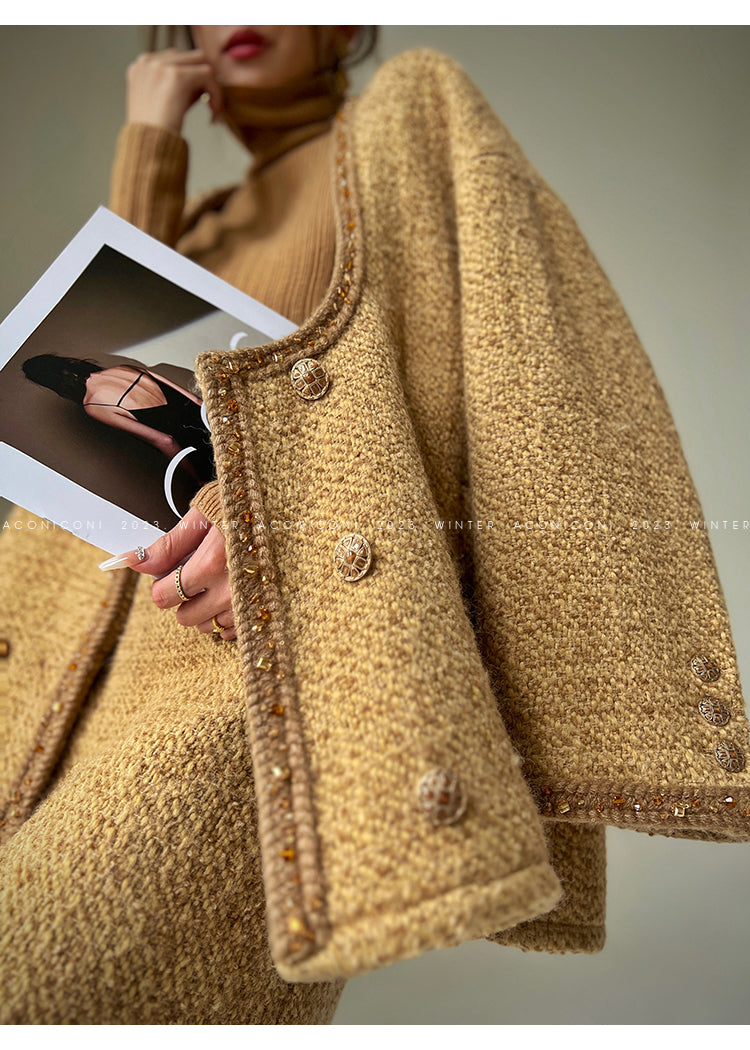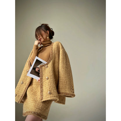 Brownie autumn wool retro tweed suit skirt jacket - Dunnu