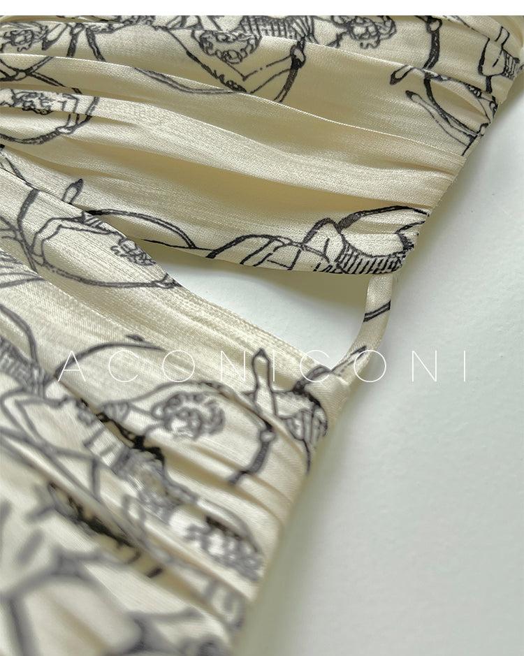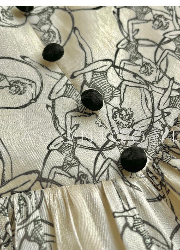Aconoconi Print Square Collar Long Puff Sleeve Bubble Short Dress - Moonlight Waltz