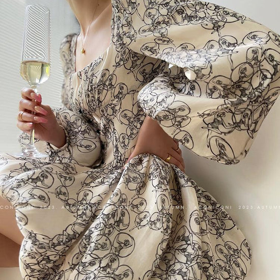 Indulge in luxury with the Aconoconi Elegant French Print Square Collar Dress. Featuring a unique print and sophisticated square collar, this dress exudes elegance and style. The long puff sleeves add a touch of romance, making it perfect for a fall hangout, work, or church outfit. Be the pinnacle of fashion in this trendy and chic dress.