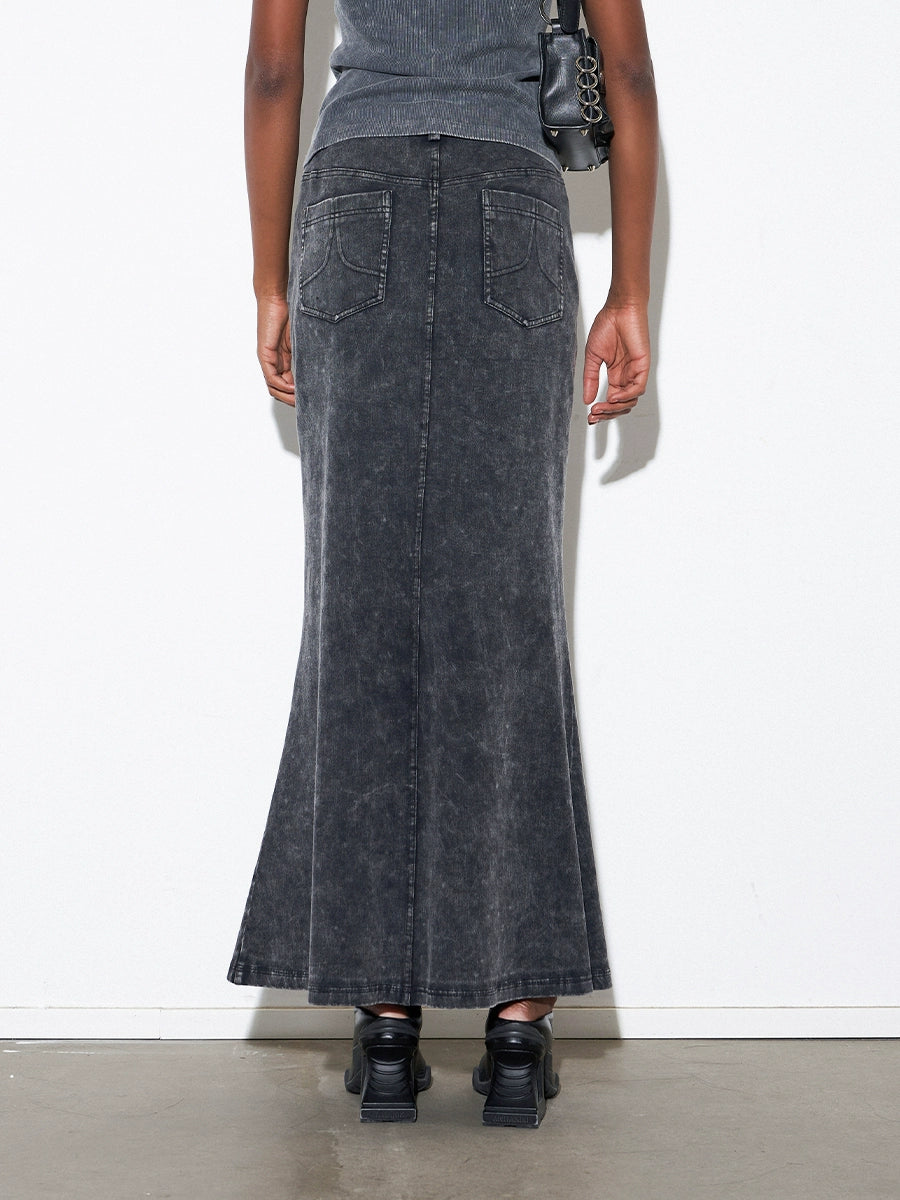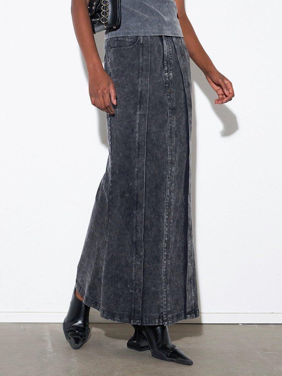 ANNAKIK autumn niche designer gray black two-piece denim skirt-NAYUTA