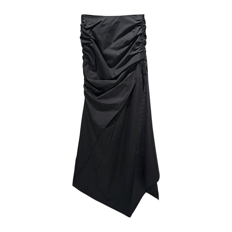 ANNAKIK Black deconstructed two irregular pleated long skirts-HIDEMI