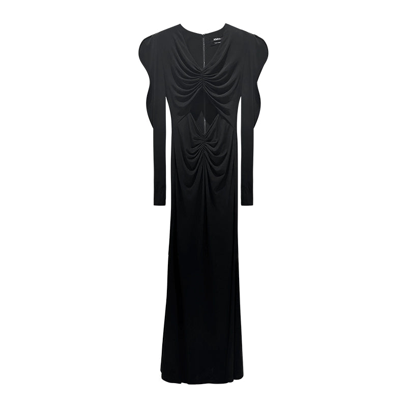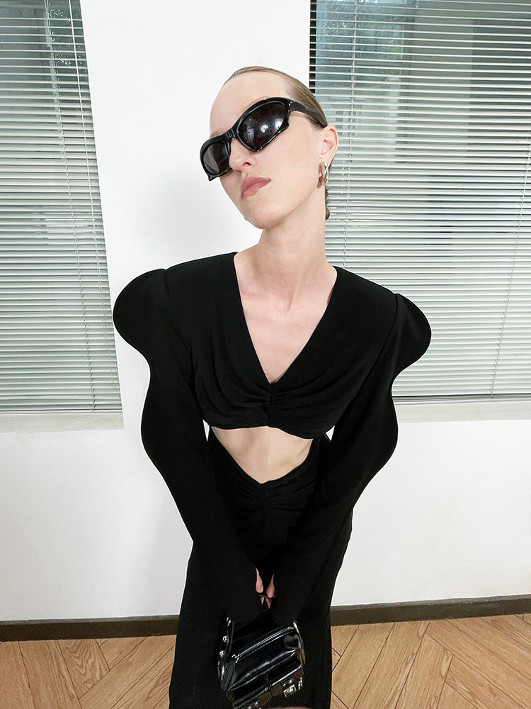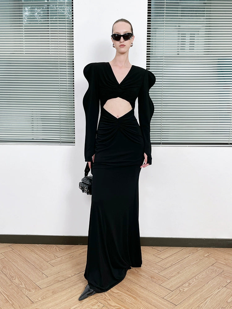 Step out boldly with the acetic acid dress featuring wavy sleeves and a daring hollow V-neck design. This striking piece blends avant-garde style with a flattering silhouette, perfect for commanding attention at any event. Its unique texture and cut accentuate your confident spirit, making it a standout choice for those who embrace individuality and fearless fashion.