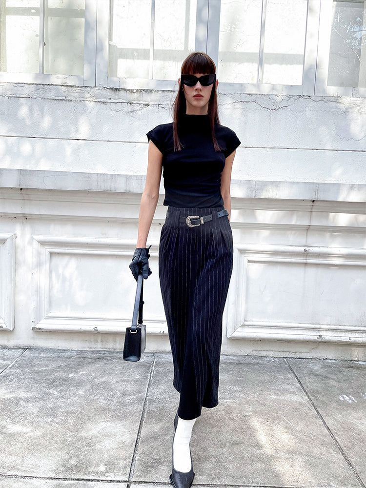 Step out in style with the Black and White Striped Vintage Belt Trim Skirt. Its classic stripes get a fun twist with a vintage belt detail that adds a playful edge to any outfit. Perfect for mixing and matching, this skirt brings retro vibes with modern flair to your wardrobe. Wear it to brighten up your day and turn heads wherever you go!