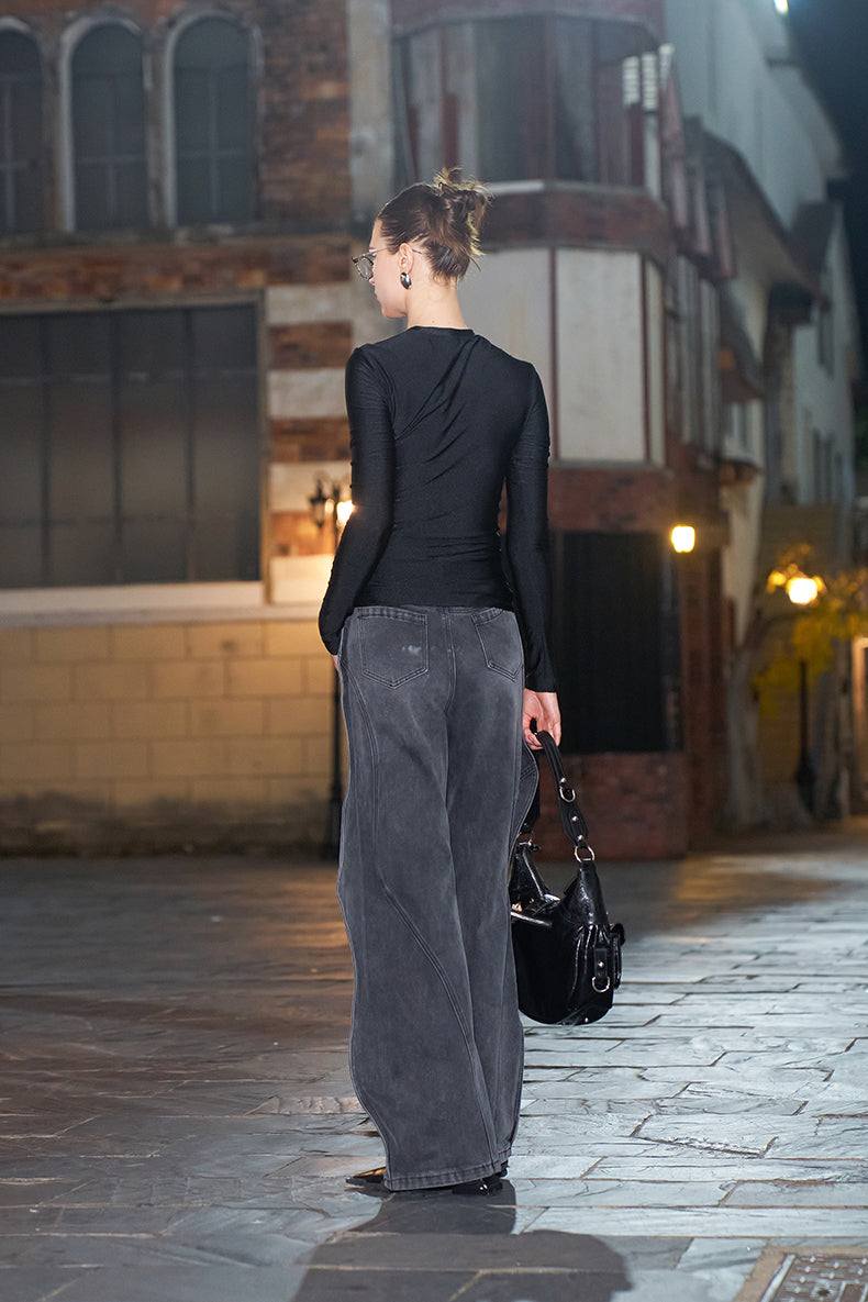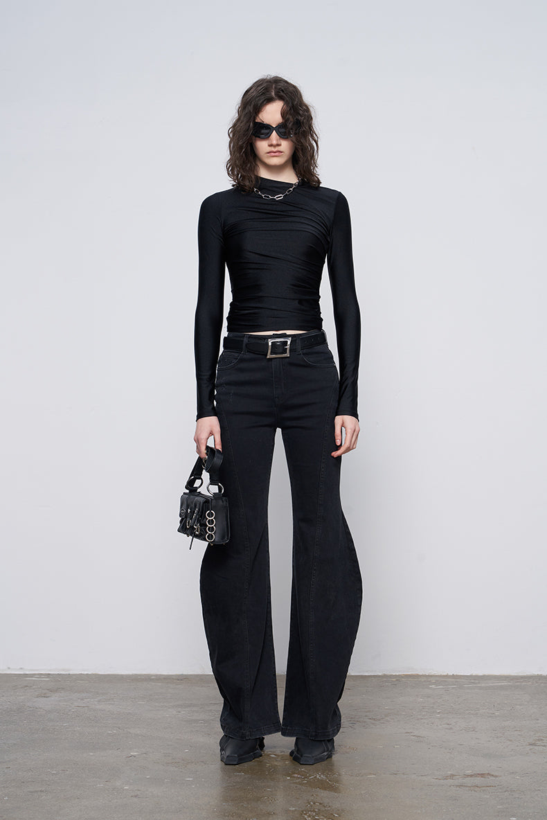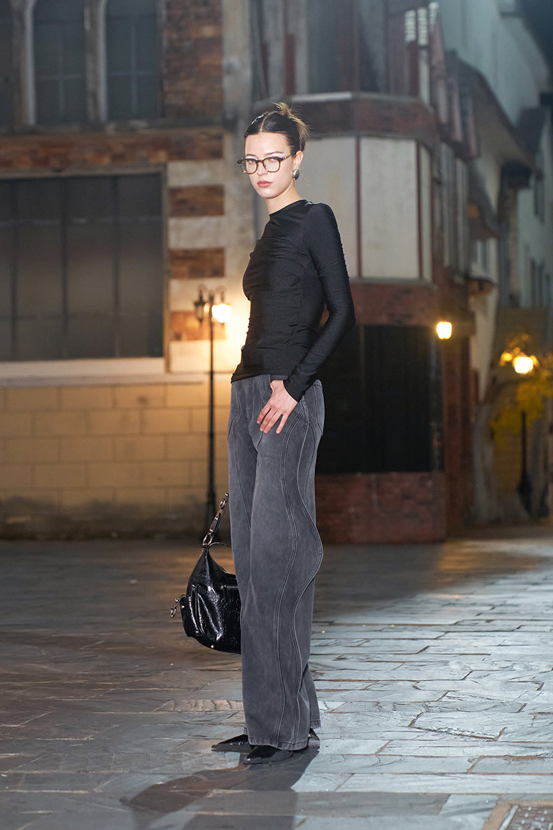 The pleated detailing across the fabric creates visual interest while the classic black colorway ensures versatility across your wardrobe. Crafted for a refined silhouette, this piece transitions seamlessly from casual weekends to polished layering. The extended sleeves provide coverage and elegance, making it an essential foundation piece for building intentional, timeless outfits.
