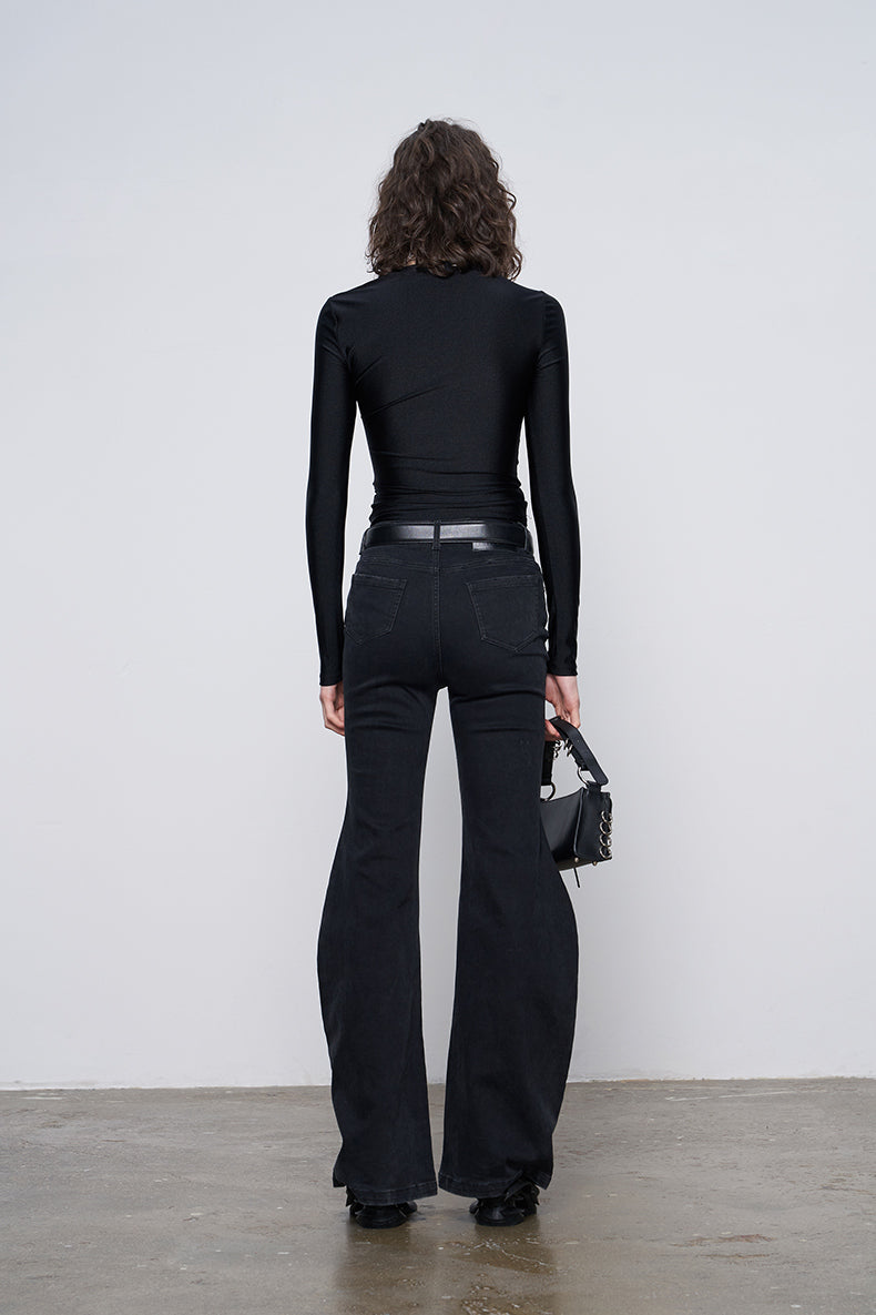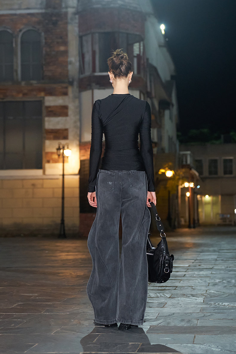 ANNAKIKI black pleated texture long-sleeved top for women-VENUS