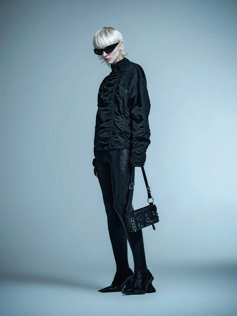Elevate your wardrobe with this sophisticated jacket, expertly designed for the modern woman. Featuring a striking black silhouette with functional zipper detailing and refined pleated construction, this piece seamlessly transitions from professional settings to casual outings. The split function design offers versatile styling options, allowing you to customize your look with ease. Crafted with attention to detail, this jacket delivers both polished elegance and practical wearability, making it an essential addition to any discerning woman's collection.