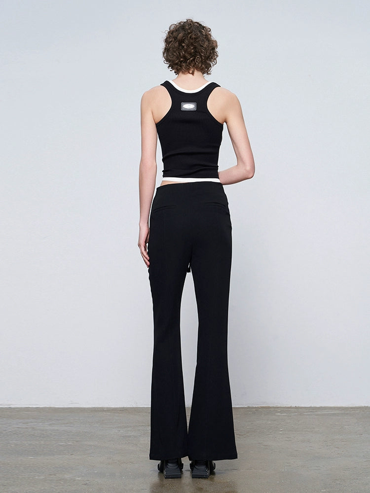 ANNAKIKI Designer Black Acetate Irregular Waist Boots Pants-KOHAKU